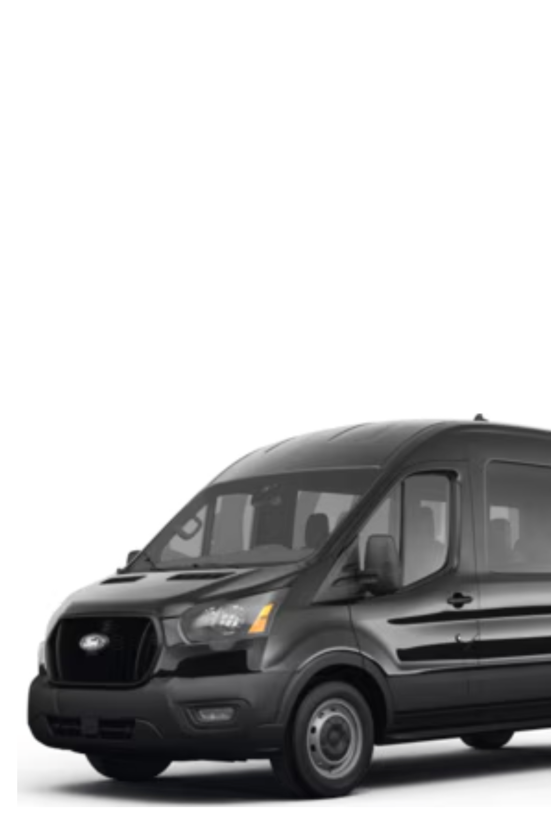● Ford Transit Van – 14-passenger, leather seats, air conditioning